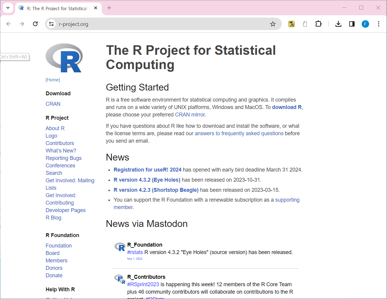 R 사이트: https://www.r-project.org/