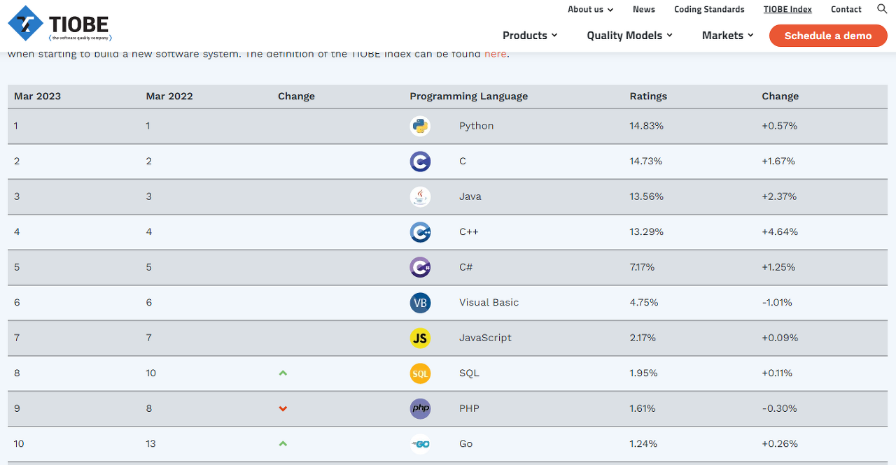 2023년 프로그래밍 언어 순위를 보면, 파이썬이 1위인 것을 볼 수 있다.