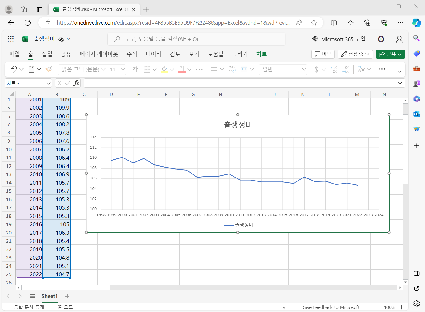#엑셀 #엑셀데이터분석 #국가통계정보 #kosis #출생성비 #excel