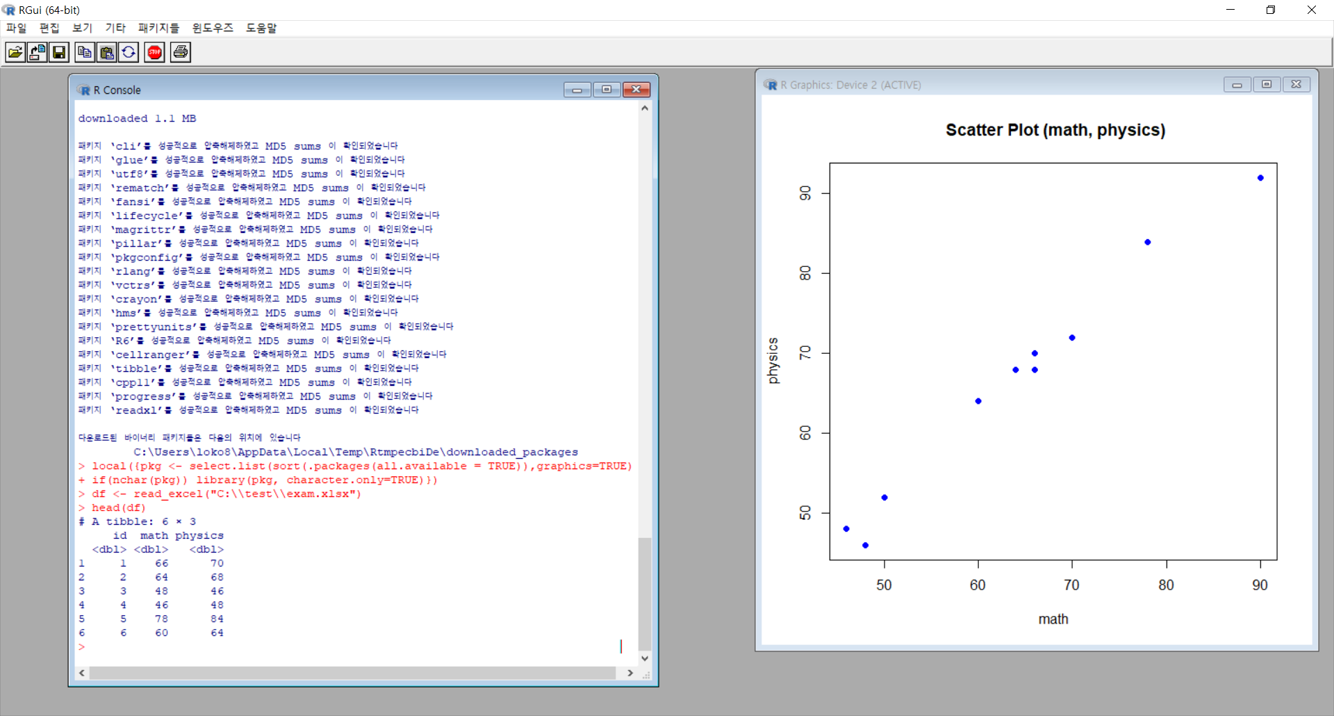 > df <- read_excel("C:\\test\\exam.xlsx")